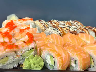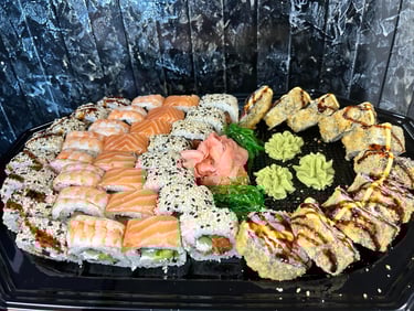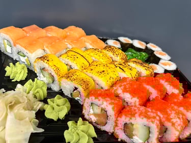 Philadelphia su lašiša, Philagreen, Karštas su krevetėmis, Kalifornija su snieginiu krabu ir ikrais, Čiz lašiša, Kalifornija su lašiša ir sezamu, Philadelphia su unguriu, Su ikrais ir tunu, Keptas su snieginiu krabu