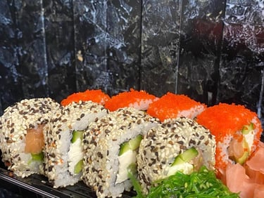 Kalifornija su lašiša ir ikrais (4 vnt.) ir Kalifornija su lašiša sezamu (4 vnt.)