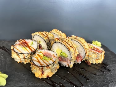Sūris Philadelphia, tunas, ikrai, salotos Iceberg, avokadas, jūros dumblių lapas, ryžiai, Panko džiuvėsėliai - 8 vnt.